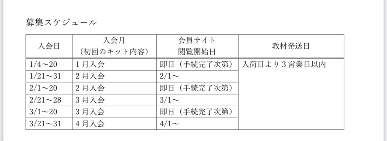 入会日によって入会月が異なります。募集スケジュールはこちらをご確認ください。