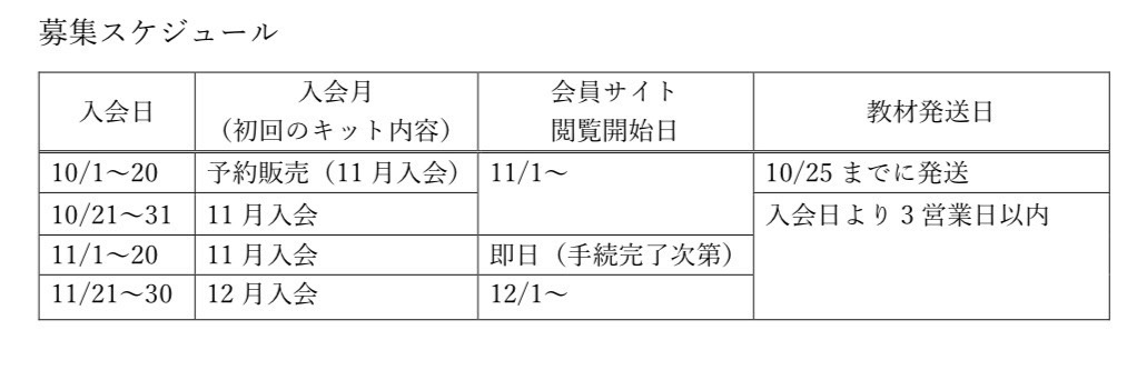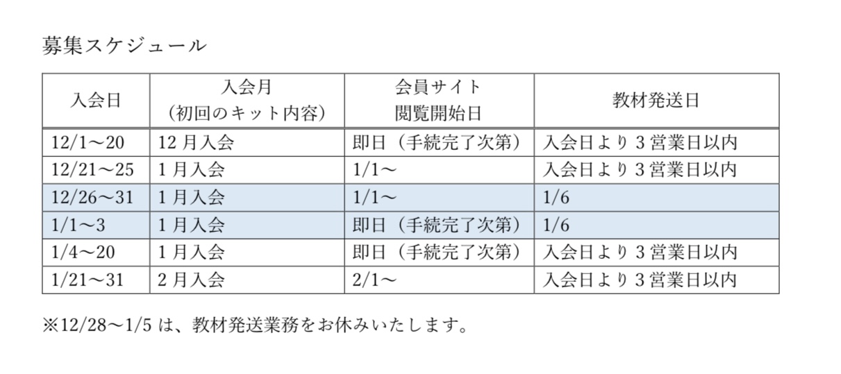 入会日によって入会月が異なります。募集スケジュールはこちらをご確認ください。