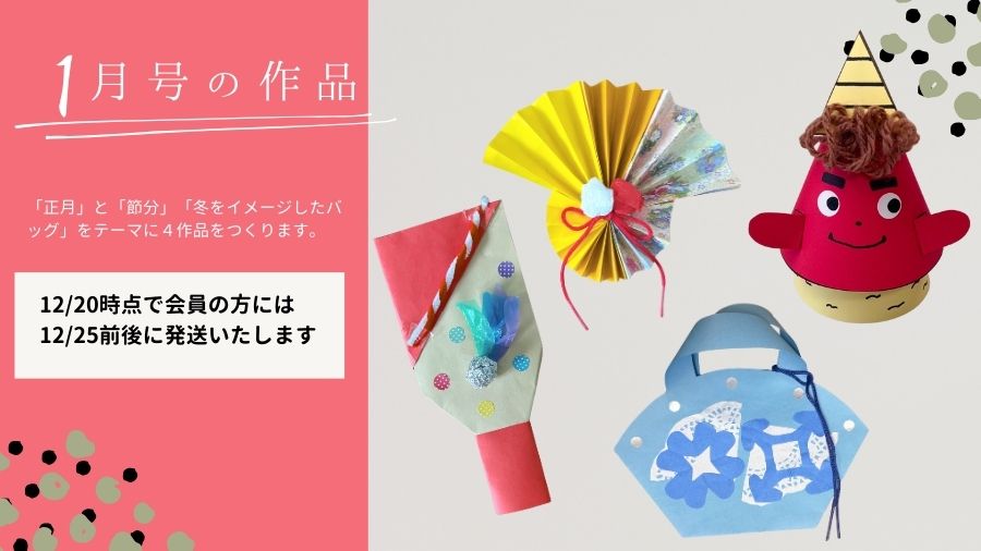 例えば12月号では『クリスマス作品2つ+お正月作品2つ』といった形です。