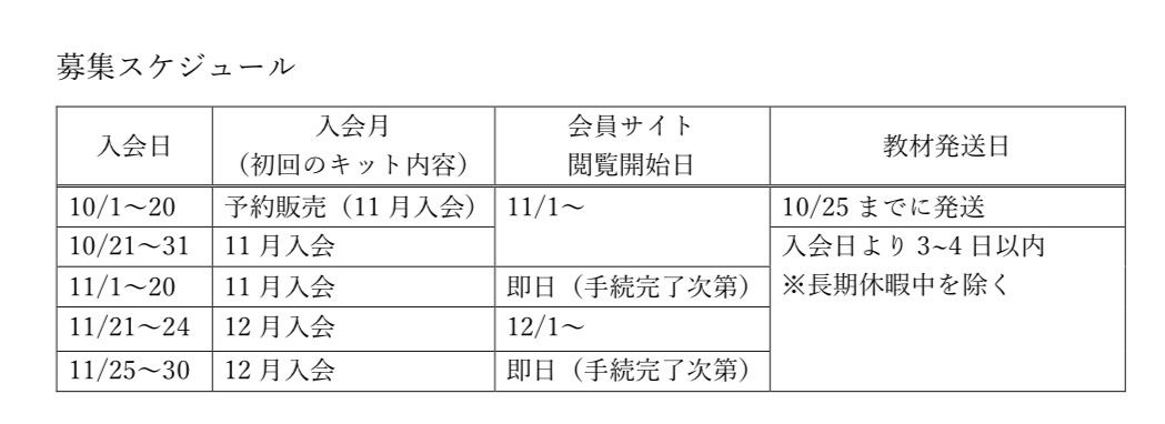 毎⽉届く制作キットと、据え置き型の教材をバランスよく活⽤しながら、少しずつ⼒を積み上げていくことをおすすめしています。